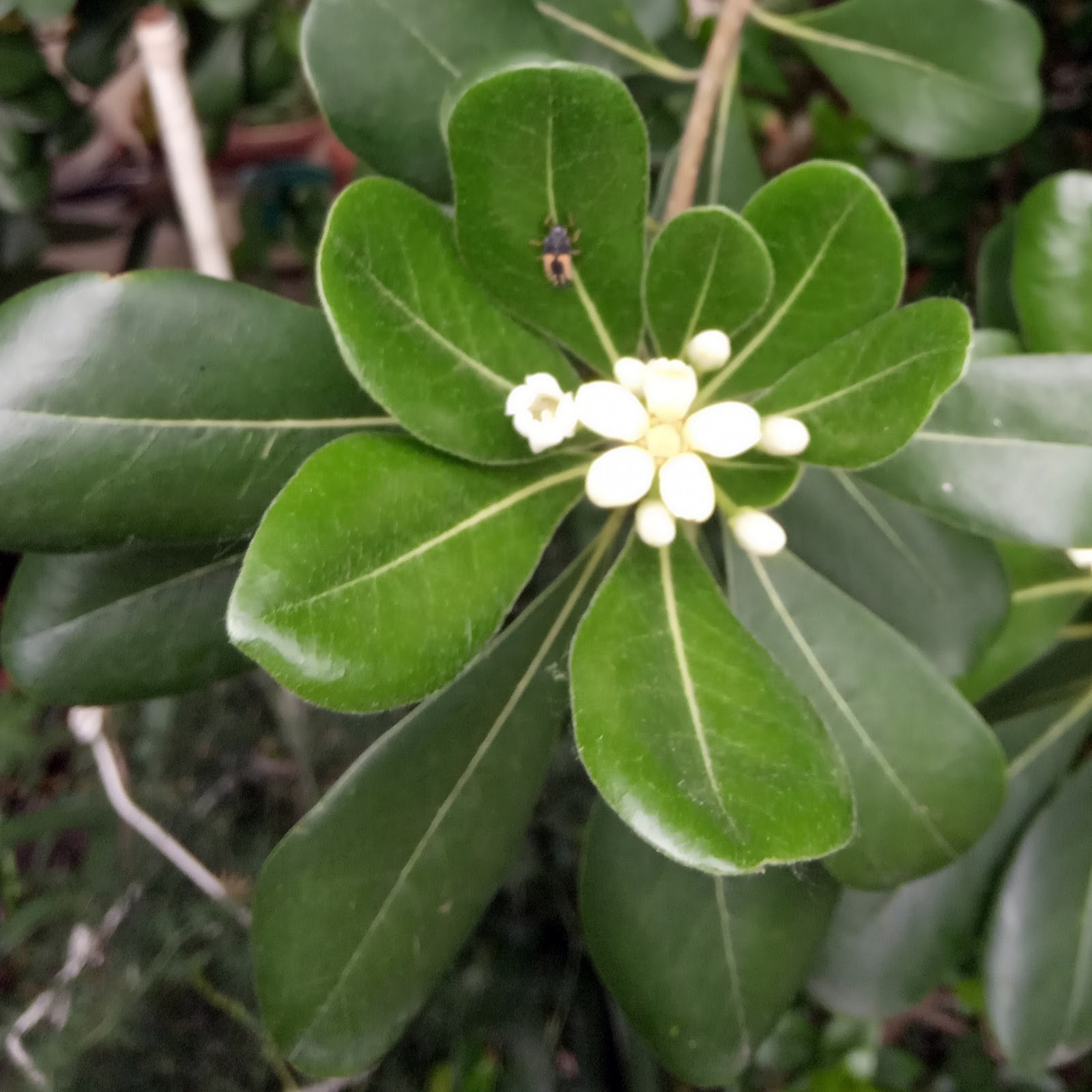 1. La quarta foto dall'alto: pianta con fiori bianchi e centro giallo (foto tra due foto di pitosforo): di cosa si tratta?